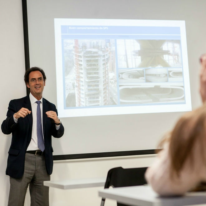 Juan Carlos de Llera traspasó a los alumnos su experiencia como emprendedor, colocando énfasis en necesidad que advirtió la sociedad a partir de la ocurrencia regular de terremotos en nuestro país. A partir de ello expuso la ruta que ha transitado y los obstáculos que encontró en el camino en el marco de su emprendimiento, que hoy se traduce en la empresa Sirve –de la cual es Presidente-, que ha desarrollado un sistema único en el mundo y con sorprendentes resultados, que han sido reconocidos en diferentes países del mundo.