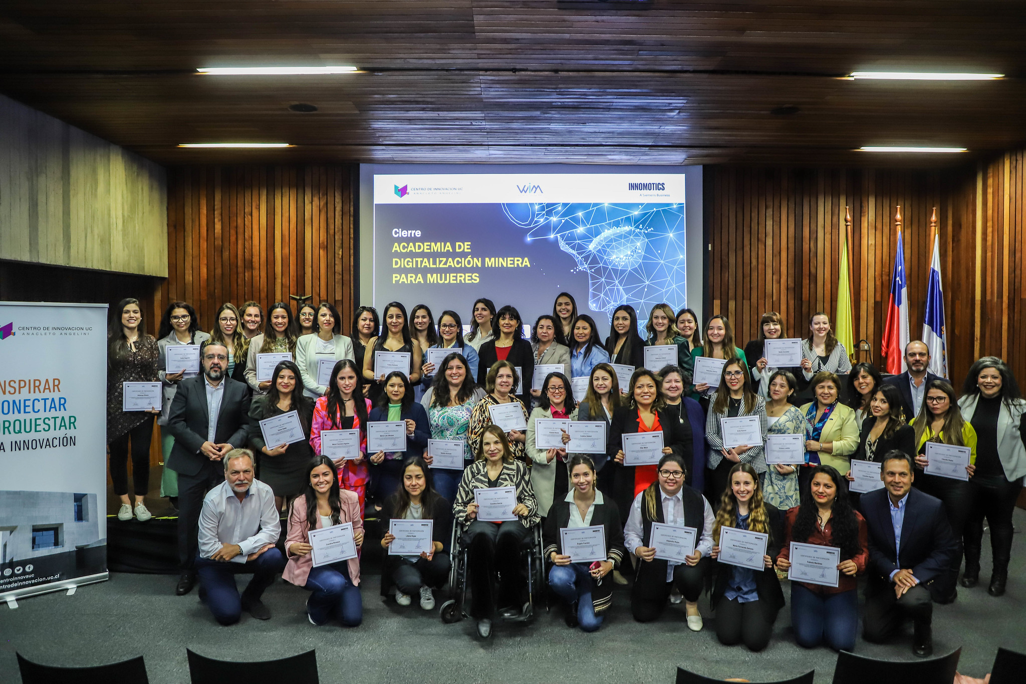 Sonriendo y comentando lo bueno que fue encontrarse en un lugar común, 58 estudiantes se graduaron de la Academia de Digitalización Minera para Mujeres impulsada por Innomotics a Siemens Business, el Centro de Innovación UC y Woman in Mining Chile.