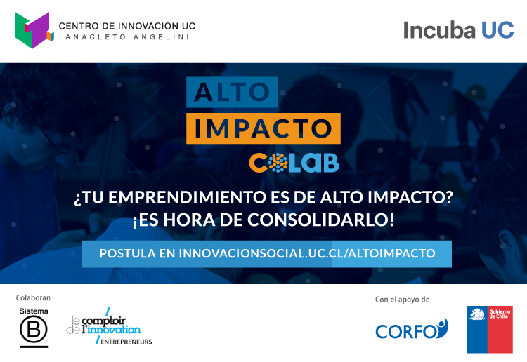 Alto Impacto II está en búsqueda de nuevos emprendedores motivados por resolver las problemáticas del territorio y sus comunidades. La aceleradora de emprendimientos sociales, impulsada por CoLab Innovación Social UC, el Centro de Innovación UC Anacleto Angelini, e Incuba UC, abrió su convocatoria 2016 este 29 de agosto para proyectos de la región Metropolitana y Coquimbo.
