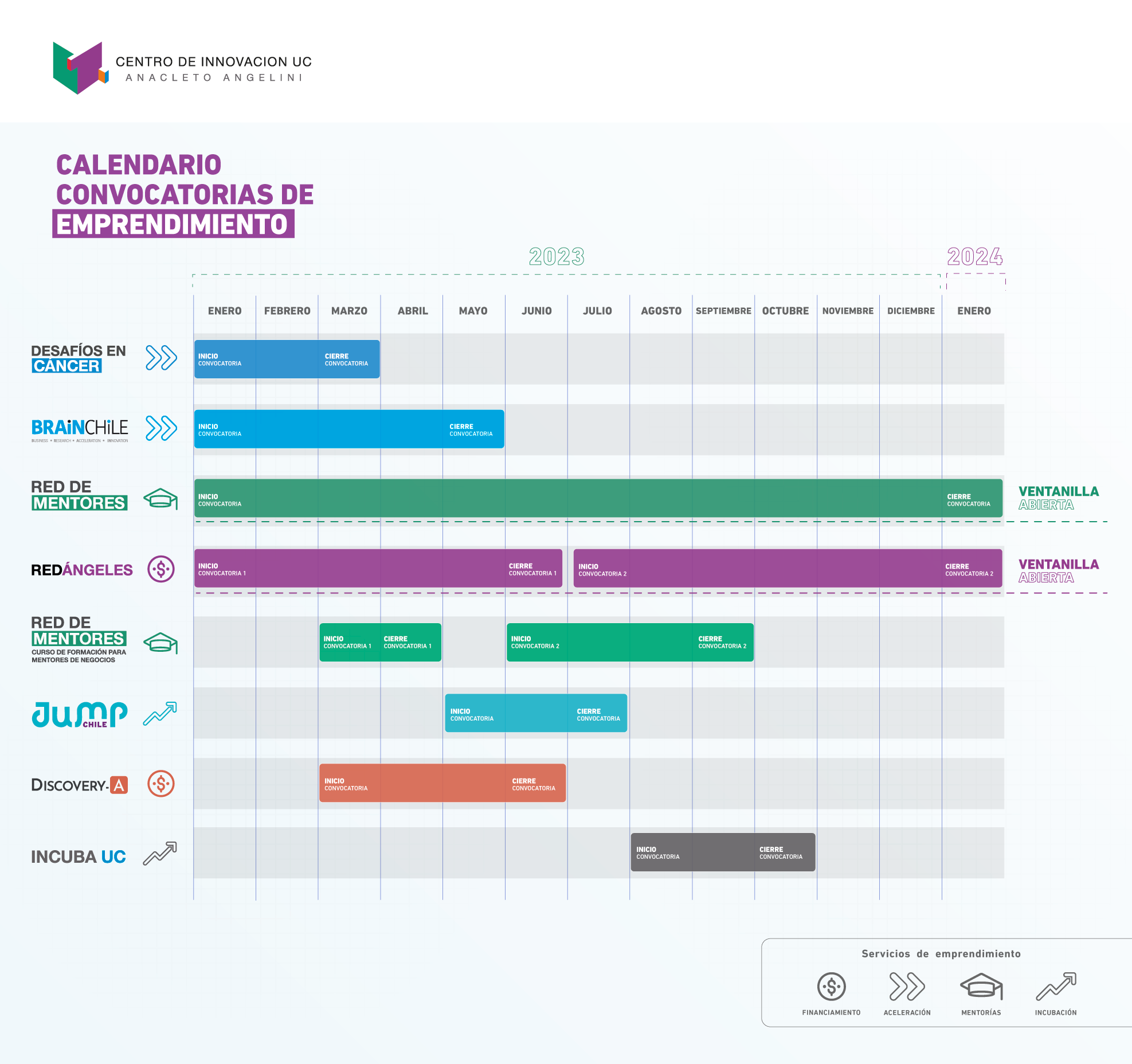 Con el inicio de marzo, el Centro de Innovación UC disponibilizó su calendario de emprendimiento y con ello la oportunidad de potenciar tu emprendimiento. Desde importantes premios en dinero hasta mentorías especializadas, son algunas de las alternativas que ofrece el Centro de Innovación UC para todos aquellos que están iniciando un emprendimiento o deseen expandir uno ya existente.