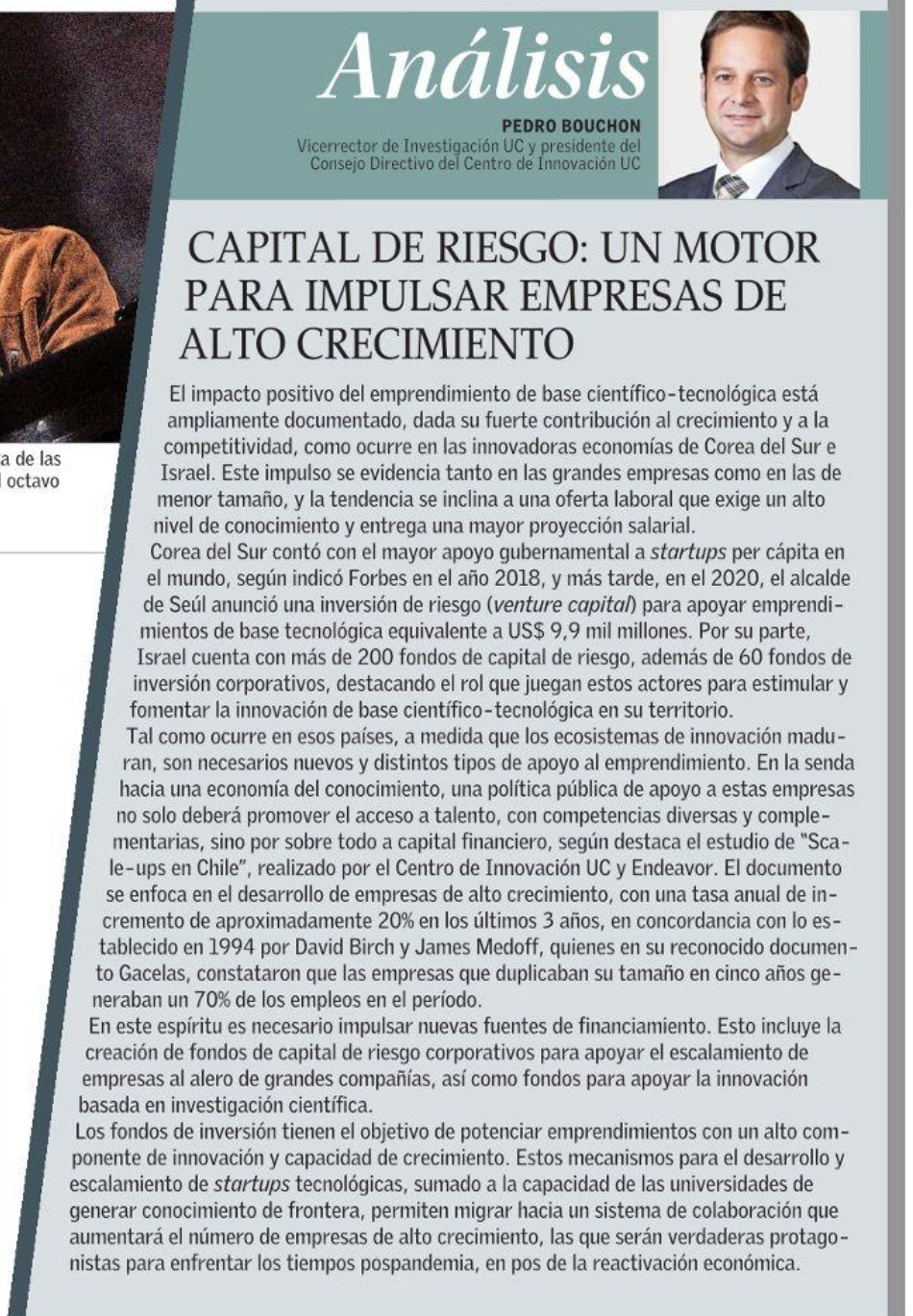 Columna de Pedro Bouchon, Vicerrector de Investigación UC y presidente del Consejo Directivo del Centro de Innovación UC. La publicación original fue realizada el 22 de junio del 2021 en El Mercurio.
