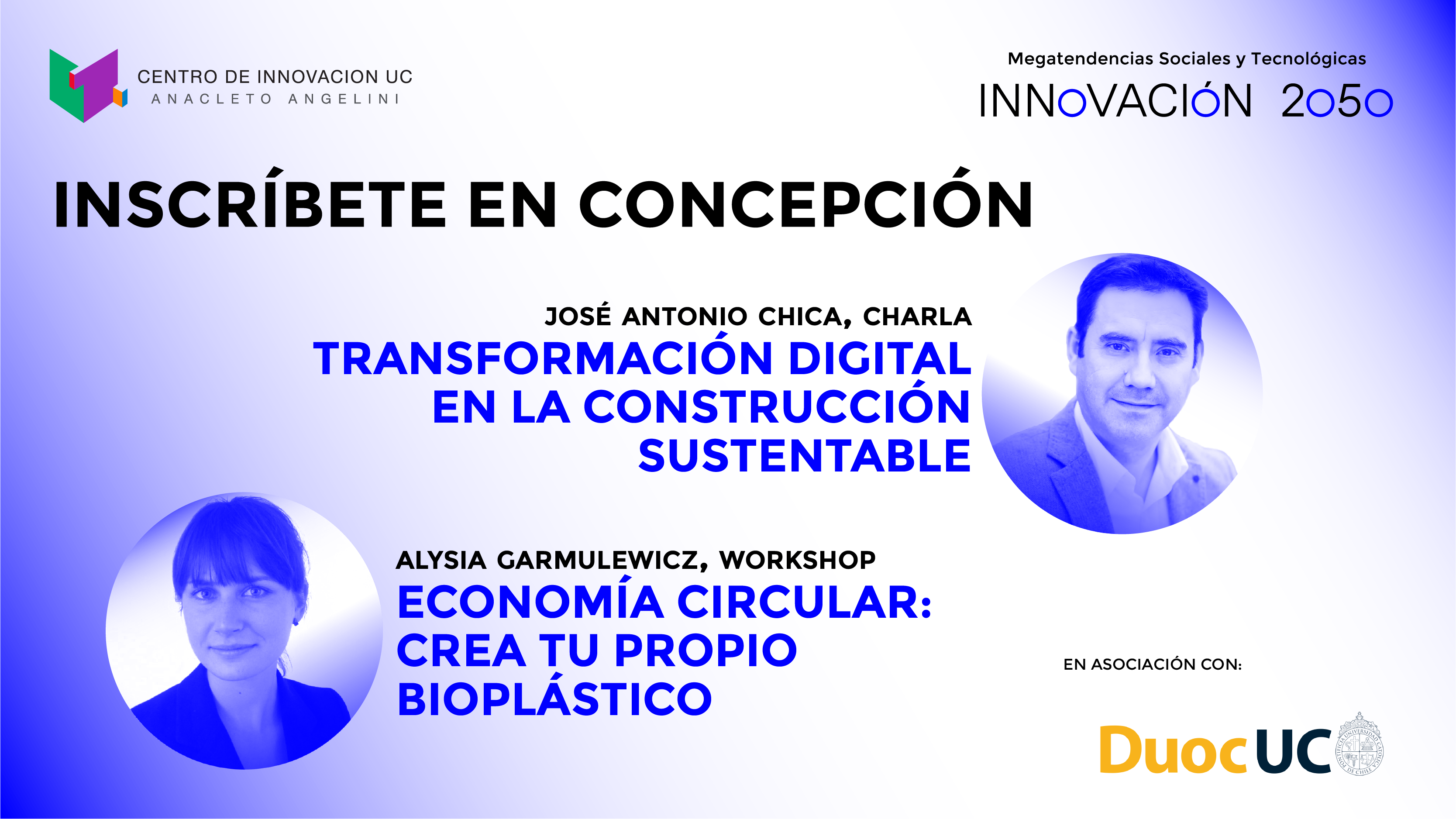 “Innovación 2050” consta de charlas, paneles y talleres prácticos con el fin de potenciar un pensamiento innovador a través de especialistas nacionales e internacionales con una fuerte visión de futuro. En la capital del Biobío, el encuentro profundizará en la temática ciudad sostenible, mezclando el desarrollo digital que acompañará el crecimiento de la urbanización con los retos que plantea la economía circular.