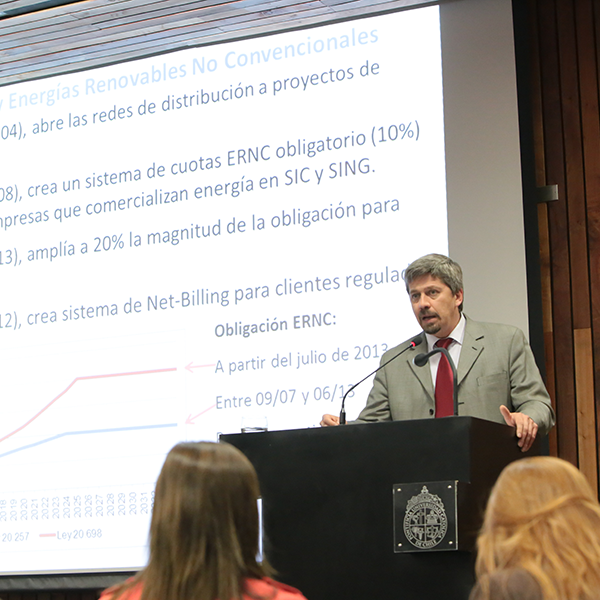 Christian Santana, Jefe de la División de Energías Renovables del Ministerio de Energía, destacó las buenas condiciones chilenas para el desarrollo de proyectos de energías renovables (revisa su presentación) , identificando los desafíos que implica la interconexión de los grandes sistemas de distribución de electricidad en el país, el perfeccionamiento legal del sistema de transmisión y la necesidad de dotarlo de flexibilidad para la gestión de una mayor participación de energía variable.