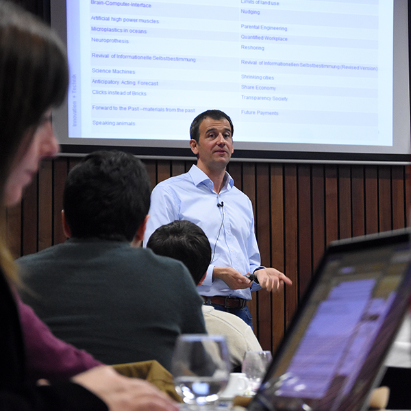 El director del Instituto de Innovación y Tecnología de Berlín, y consultor internacional de VDI/VDE Innovation + Technik, Marc Bovenschulte, fue el encargado de presentar esta metodología que lleva la prospectiva –ciencia que estudia el futuro para comprenderlo y poder influir sobre él- a los procesos de toma de decisión, inicialmente en el campo de las políticas públicas para establecer estrategias de desarrollo, principalmente en la Unión Europea y los países de Asia.