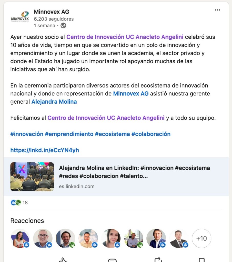 Nuestros socios pertenecientes al mundo de la minería, Minnovex AG, también estuvieron presente en nuestro aniversario de 10 años. Revisa la publicación en su cuenta de LinkedIn acá