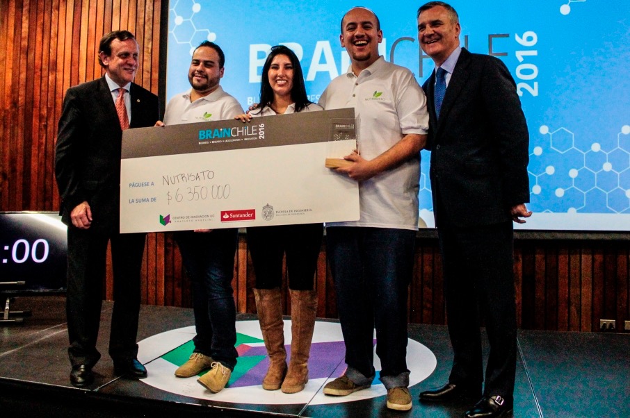 La iniciativa Nutrisato se llevó la mayor cantidad de inversión de Brain Chile 2016, alcanzando un total de $6.350.000. El equipo está integrado por Carla Céspedes, estudiante de Ingeniería Agronómica de la Universidad de Chile; Rodrigo Ferreira, estudiante de Ingeniería Comercial de la Universidad de Santiago; y Alejandro Muñoz, estudiante de doctorado en Biotecnología de la Universidad de Santiago. Su proyecto se trata de un fertilizante bíoestimulante que mejora los suelos y estimula el crecimiento vegetal, tanto de hojas, frutos y flores, cuidando el medio ambiente. Beneficios que se traducen en un mayor rendimiento para el productor agrícola a un menor precio. La iniciativa busca lanzarse al mercado el primer semestre de 2017.