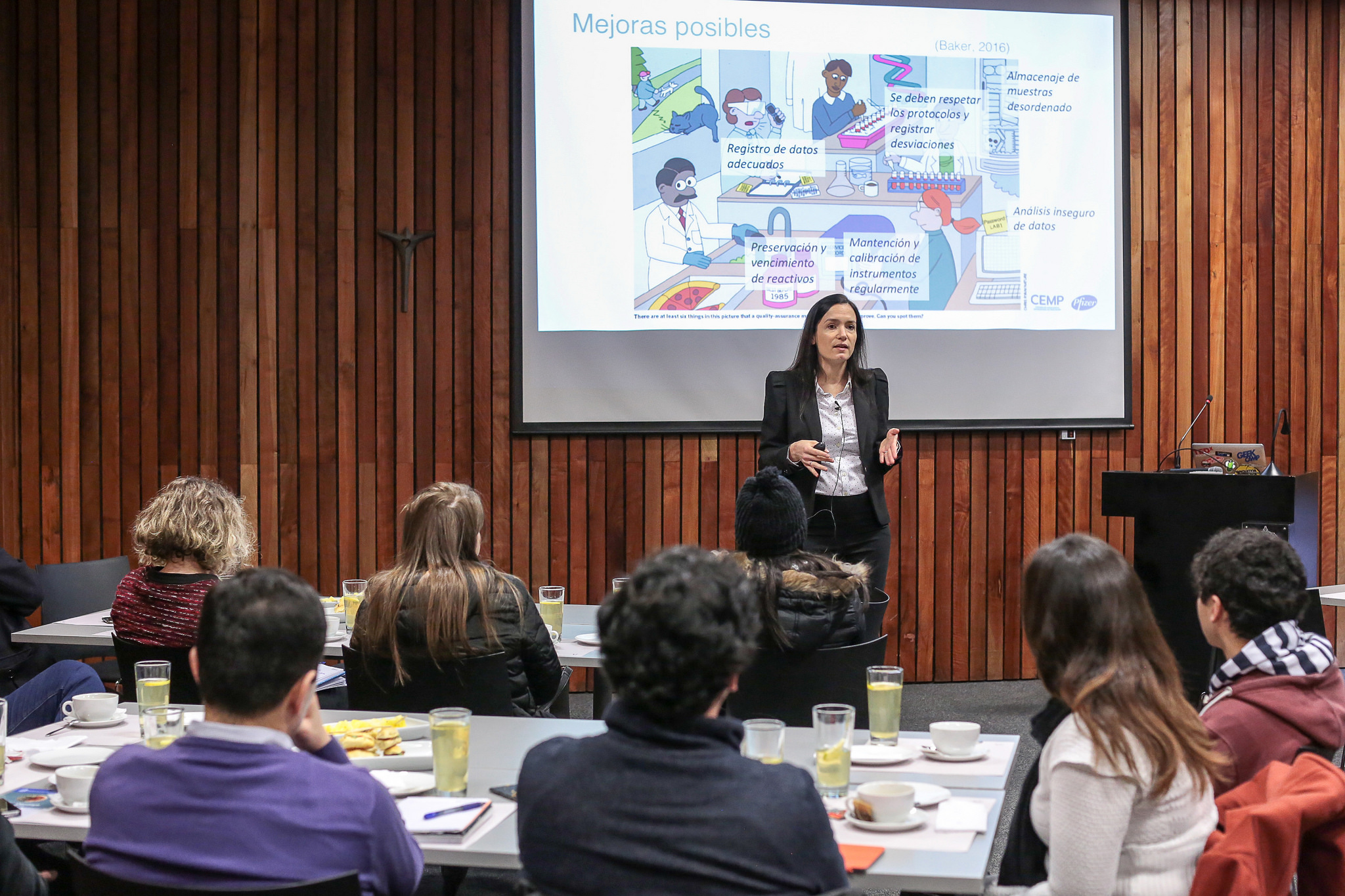 Una tercera mirada ofreció la líder de colaboración y transferencia tecnológica de Pfizer, Romina Hidaldo, al dar cuenta de los desafíos en investigación y colaboración de la industria farmacéutica. Desde el punto de partida en el que se elige una enfermedad para el desarrollo de una solución, pasan numerosas etapas experimentales para velar por la seguridad y la efectividad de un tratamiento. El descubrimiento y desarrollo de un nuevo medicamento requiere entre 12 y 15 años y una inversión billonaria. Debido a su alta complejidad y su baja tasa de éxito, la industria farmacéutica necesita permanentemente incorporar nuevas investigaciones.