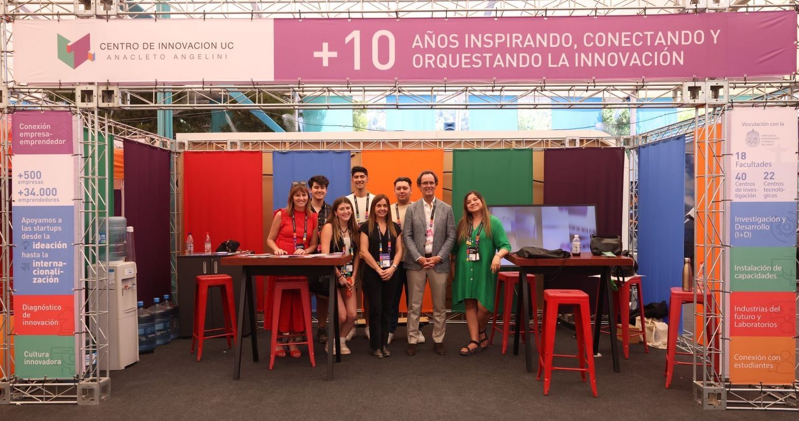 La participación del Centro de Innovación UC, estuvo abordada con diversas acciones, desde un stand donde las empresas pudieron hacer networking con el ecosistema emprendedor de Chile, además de interactuar con Fiona- la Inteligencia Artificial presentada por CENIA (Centro Nacional de Inteligencia Artificial)-, y una presentación en el escenario principal del evento, relatando la ruta que pueden tomar las startup al ponerse en contacto con el equipo.