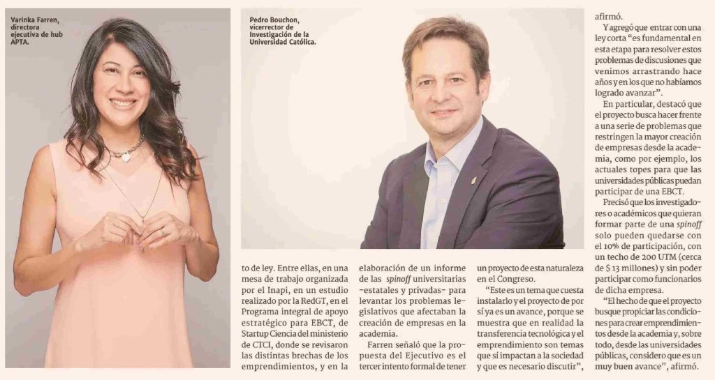 Farren señaló que la propuesta del Ejecutivo es el tercer intento formal de tener tercer intento formal de tener un proyecto de esta naturaleza en el Congreso. «Este es un tema que cuesta instalarlo y el proyecto de por sí ya es un avance, porque se muestra que en realidad la transferencia tecnológica y el emprendimiento son temas que sí impactan a la sociedad y que es necesario discutir», afirmó.