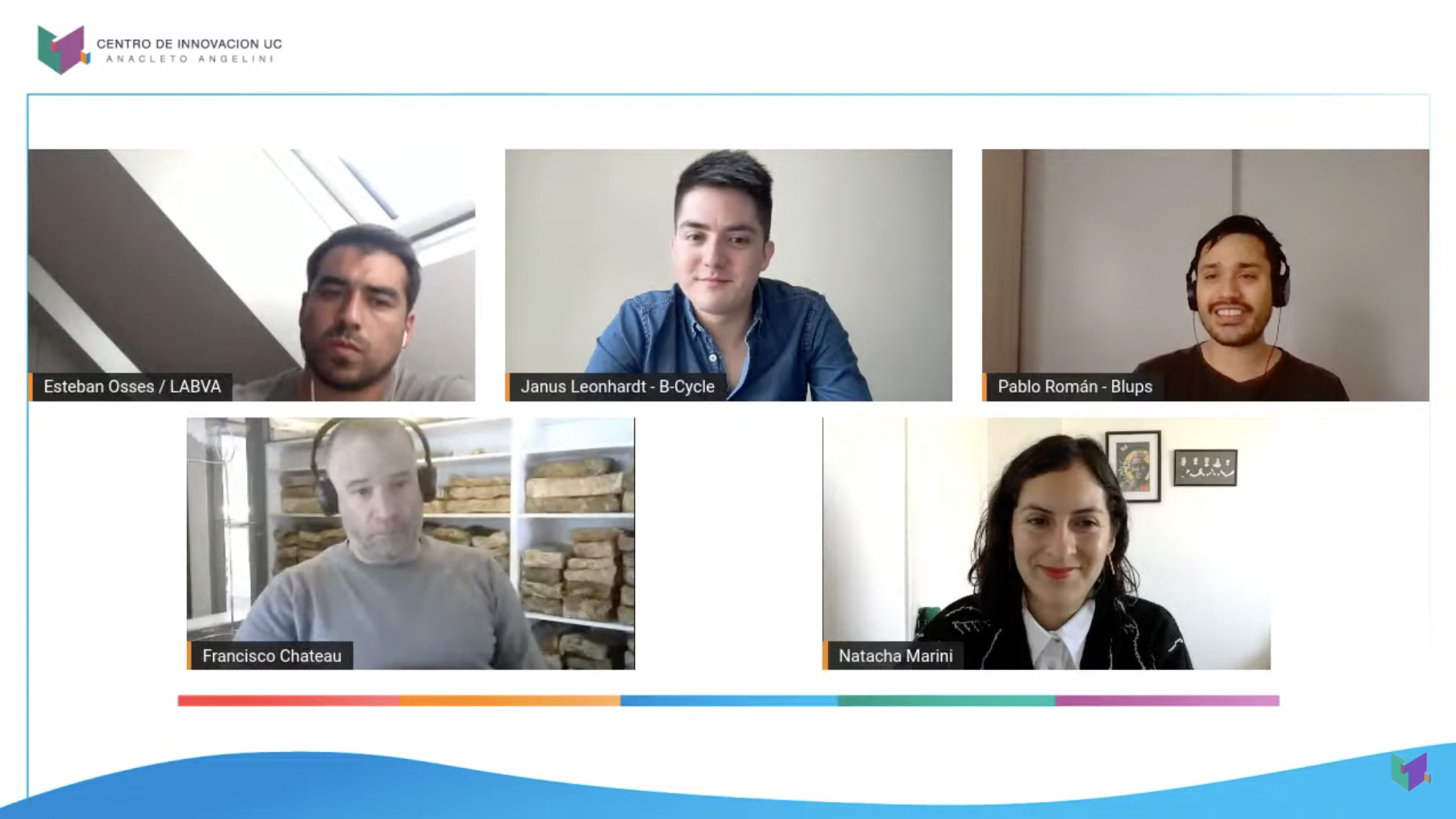 Con el fin de discutir sobre la importancia de los biomateriales y su impacto en el ecosistema, se realizó esta charla en la cual participó el Director del Laboratorio de prototipos de la Facultad de Arquitectura, Diseño y Estudios Urbanos de la Pontificia Universidad Católica de Chile, Francisco Chateau; Janus Leonhardt, Cofundador y Director Estratégico de B-Cycle; Carmen Vidal Gaete, Co-fundadora de Blups; y Esteban Osses, integrante del equipo de Biomateriales Nativos Labva.