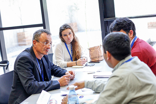 Luego de presentación de Ronald Visschers, las empresas participantes del encuentro empresarial “Alimentos saludables: nuevas tecnologías y generación de negocios”, hicieron uso de los variados espacios del Centro de Innovación UC para realizar reuniones bilaterales durante todo el día. 16 empresas y organizaciones europeas sostuvieron más de 50 sesiones de trabajo B2B con compañías chilenas de toda la industria alimentaria, y rubros asociados.