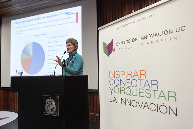 “Los alumnos de doctorado no deben bloquearse con que la academia es la única vía de trabajo. Tenemos que lograr que haya cada vez más innovadores al interior de los programas de doctorado, para que los alumnos vean que existe un campo que no está explotado en Chile. Y tenemos que hacerlo ya“, enfatizó Carmen Luz Latorre, Directora del Programa de Atracción e Inserción de Capital Humano Avanzado (PAI) de CONICYT. Enfatizando en necesidad de insertar doctores en el sector empresarial –cantidad que en Chile apenas asciende a un 3,8% del total- la experta argumentó que tanto universidades como empresas en otros países “les demuestran que trabajar en ese campo posible en distintas etapas formativas”.