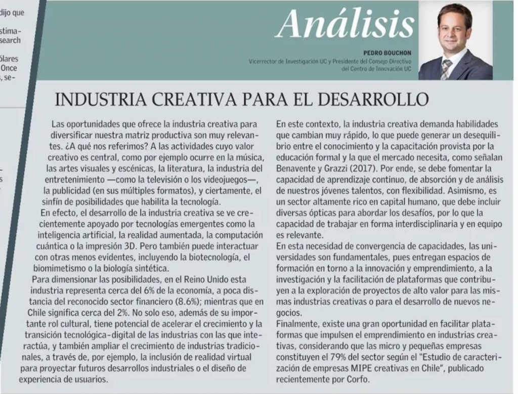Columna de Pedro Bouchon Vicerrector de Investigación UC y Presidente del Consejo Directivo del Centro de Innovación UC. La publicación original fue realizada el 27 de julio del 2022 en El Mercurio.