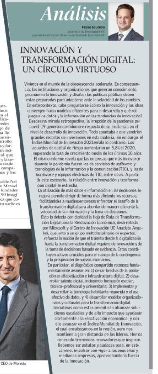 Columna de Pedro Bouchon, Vicerrector de Investigación UC y presidente del Consejo Directivo del Centro de Innovación UC. La publicación original fue realizada el 02 de diciembre del 2021 en El Mercurio.