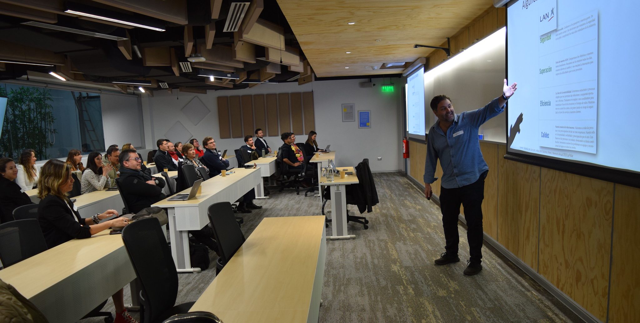 Los asistentes le preguntaban al ingeniero civil de industrias de la UC cómo resolver los desafíos de innovación a los que se enfrentaban diariamente en sus lugares de trabajo, demostrando que el intercambio de experiencias es un factor determinante en estas instancias.