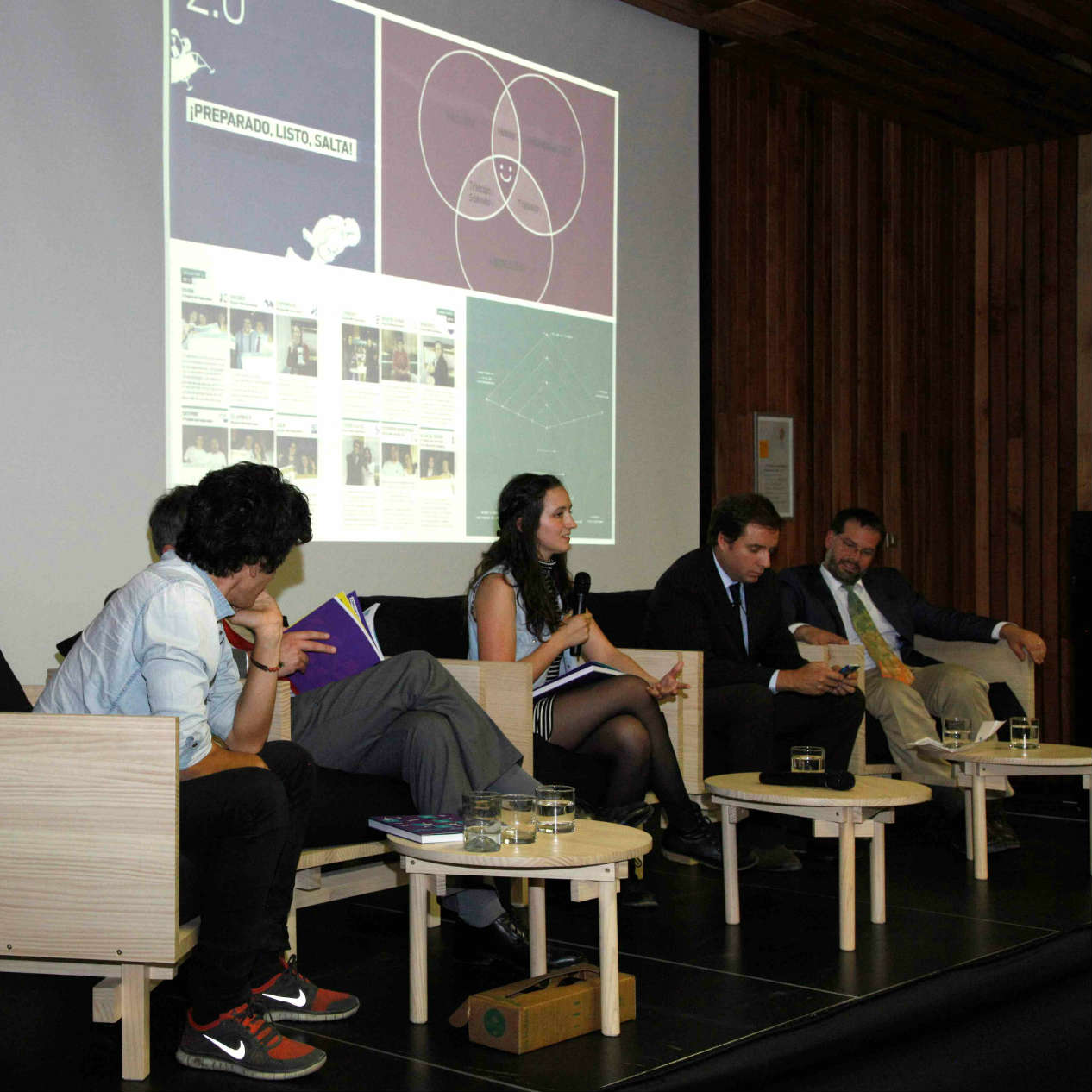 Hacia el final del encuentro, se llevó a cabo el panel “Emprendimiento Universitario: ¿Qué tan alto vas a saltar?”. En él, se reunieron Óscar Muñoz y Valentina Montenegro, ambos participantes de la versión 2013 y creadores de Green Glass y Biogusto, respectivamente, quienes fueron acompañados por Inti Núñez, Conrad Von Igel, Director Ejecutivo del Centro de Innovación UC, y Cristóbal García. Los comentarios y respuestas de los panelistas generaron una interesante conversación en torno a la guía y las herramientas que le entregará a quienes se aventuren en la experiencia de emprender con éxito.