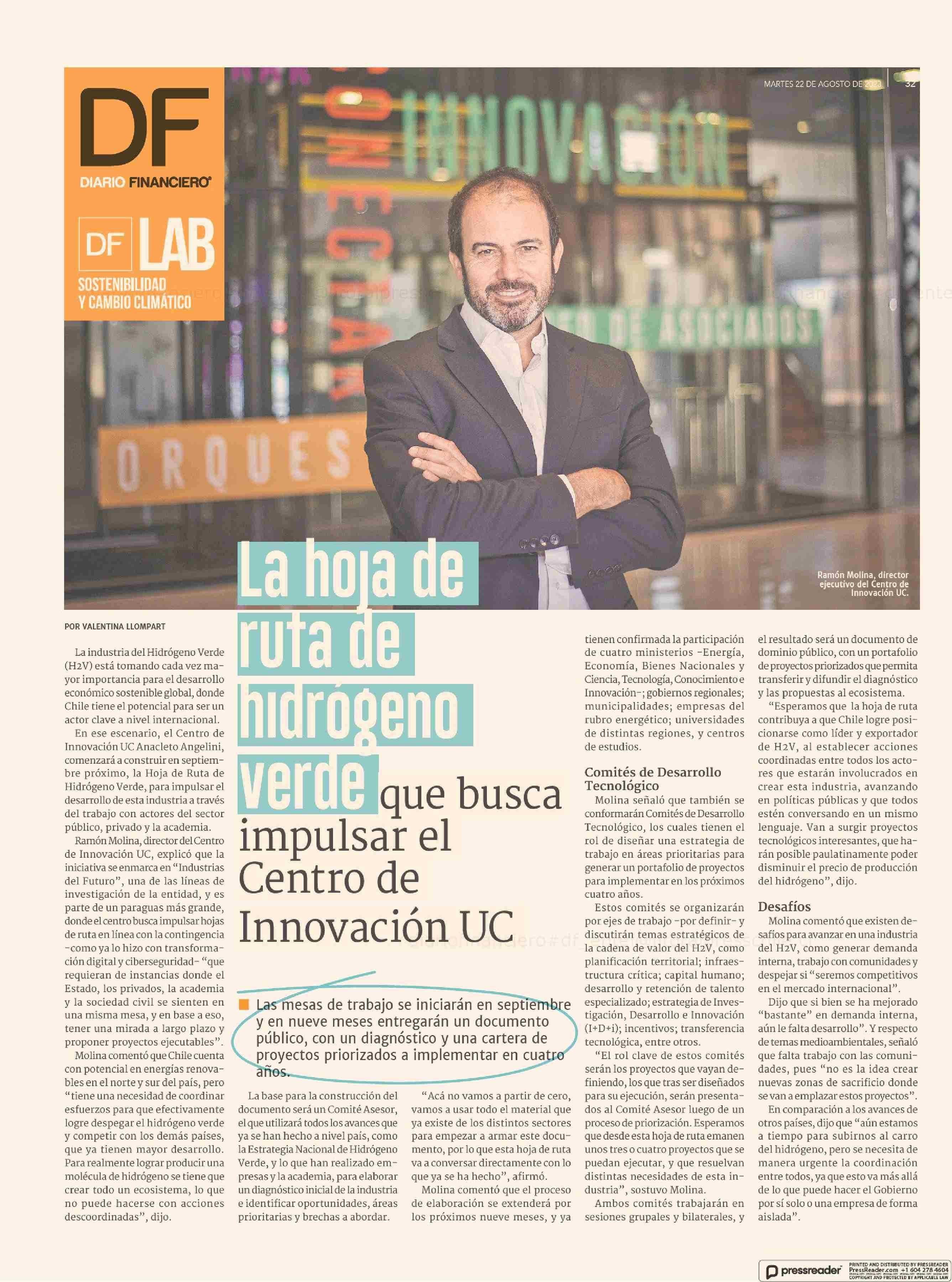 En ese escenario, el Centro de Innovación UC Anacleto Angelini, comenzará a construir en septiembre próximo, la Hoja de Ruta de Hidrógeno Verde, para impulsar el desarrollo de esta industria a través del trabajo con actores del sector público, privado y la academia.