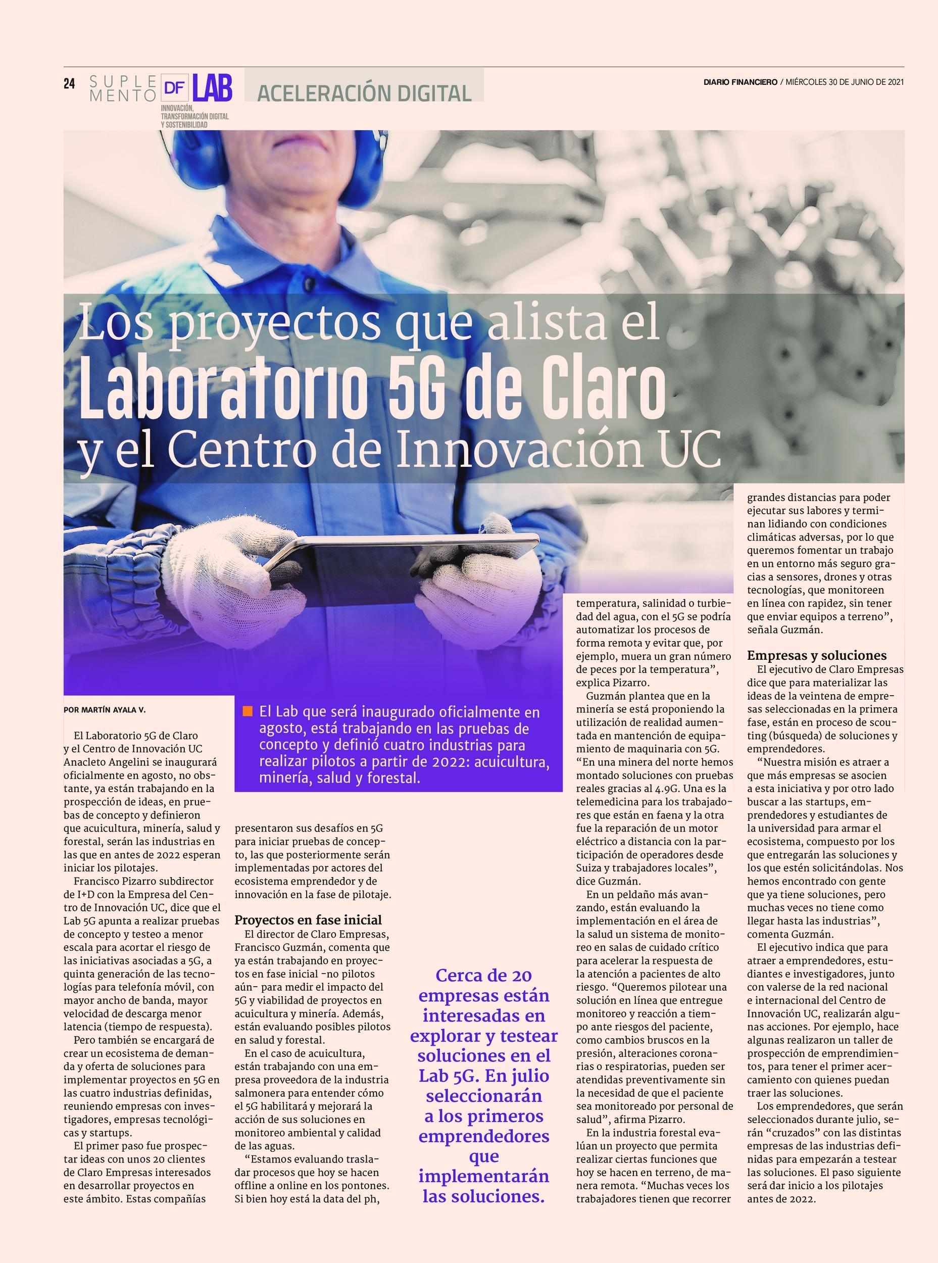 El director de Claro Empresas, Francisco Guzmán, comenta que ya están trabajando en proyectos en fase inicial -no pilotos aún- para medir el impacto del 5G y viabilidad de proyectos en acuicultura y minería. Además, están evaluando posibles pilotos en salud y forestal.