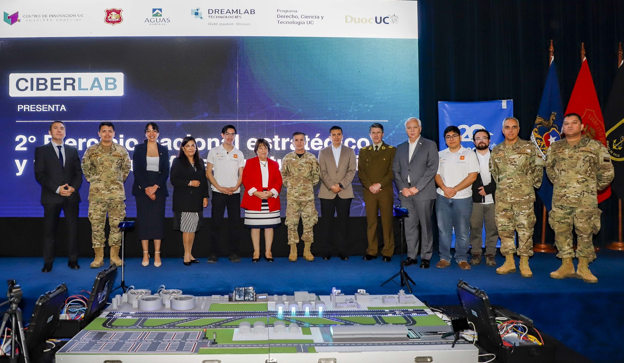 En un despliegue liderado por el CiberLab- perteneciente al Centro de Innovación UC y el Ejército de Chile-, junto a DreamLab Technologies LATAM, el Programa de Derecho, Ciencia y Tecnología de la UC, Duoc UC y Aguas Andinas, los participantes pudieron ser parte de una experiencia basada en acciones muy similares a las que constantemente viven los comités de crisis con el fin de desarrollar resiliencia a nivel nacional e inter institucional.