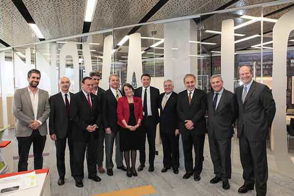 La comitiva encabezada por Renzi visitó el espacio de trabajo colaborativo del quinto piso del edificio y las oficinas de Arauco Innova. Para el Rector Ignacio Sánchez, la presencia del primer ministro en el Centro, «responde a la larga y productiva relación que tenemos con Italia, tanto en el ámbito académico, con numerosos profesores y estudiantes en programas de intercambio, como en el colaborativo en diversas áreas», destacó.