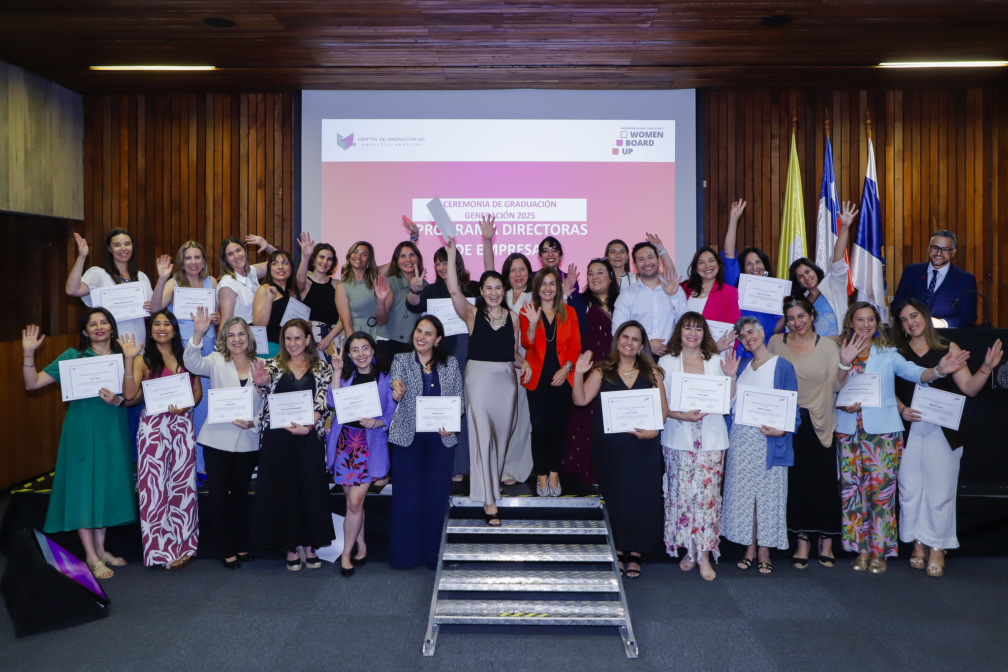 Las integrantes de la 4ta generación del Programa Internacional para Directoras de Empresas Innovadoras- desarrollado por el Centro de Innovación UC Anacleto Angelini y Women Board Up, en alianza con Carey, Fundación Chile y la Organización Mundial de Propiedad Intelectual (OMPI)- fueron parte de la ceremonia de graduación, luego de las 13 sesiones donde abordaron temáticas como ciberseguridad; estrategias de negociación; finanzas y tomas de decisiones en directorios; feminismo; y sostenibilidad; entre otras.