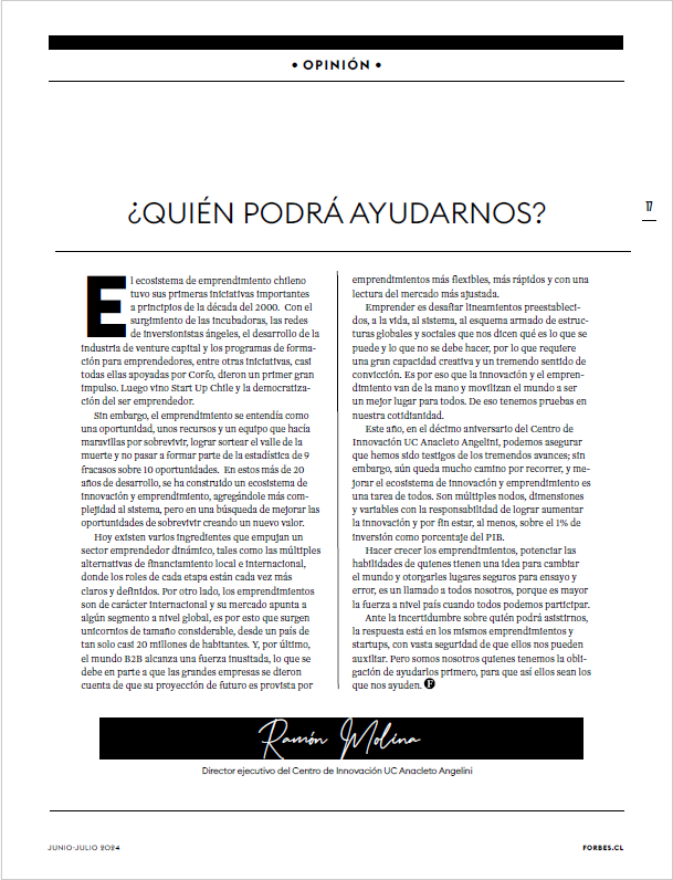Columna de Ramón Molina, Director Ejecutivo del Centro de Innovación UC Anacleto Angelini. La publicación original fue realizada el 02 de julio de 2024 en la revista Forbes.