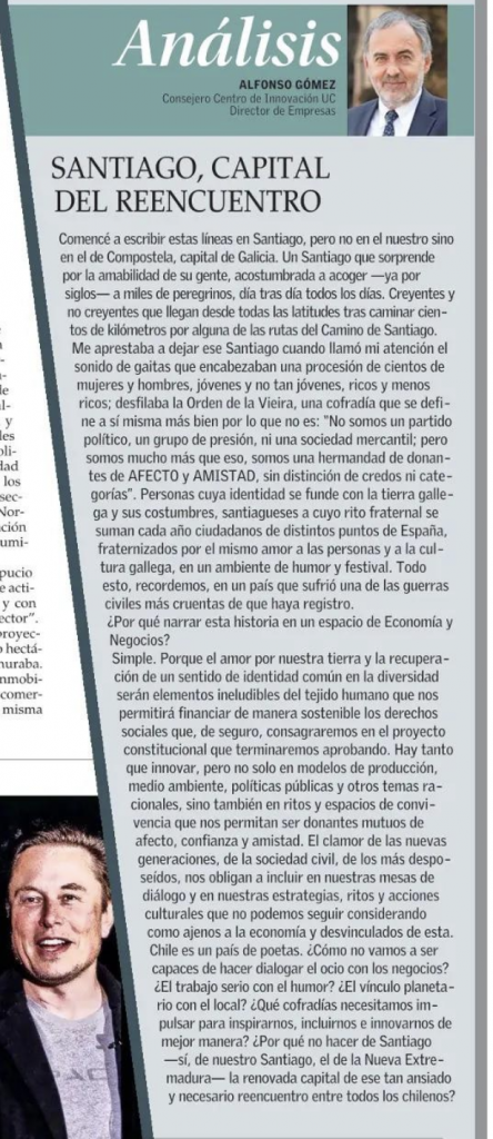 Columna de Alfonso Gómez, Consejero Centro de Innovación UC y Director de Empresas, publicada el 15 de septiembre en El Mercurio.
