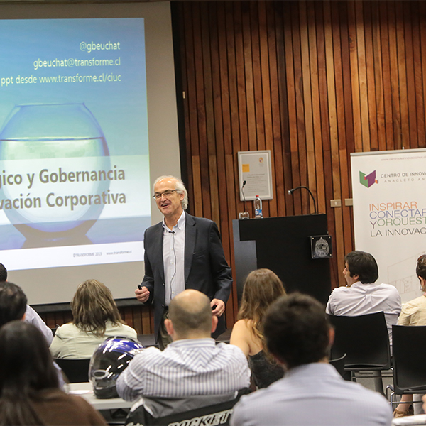 Beuchat, socio de Transforme Consultores, empresa que también es socia del Centro de Innovación, realizó una sesión doble de trabajo, en la que primero repasó herramientas para definir los focos y desafíos que las empresas deben tener en cuenta a la hora de innovar, y, luego, trabajó con herramientas de gestión de la innovación a partir de casos reales de grandes empresas nacionales que han enfrentado desafíos para el mejor desarrollo de sus negocios.