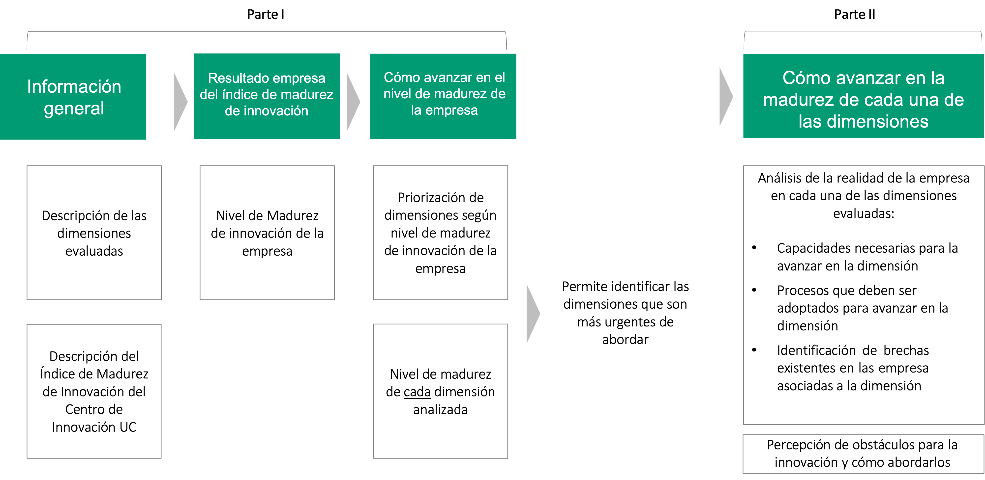 Reporte extendido que entrega los resultados de la evaluación de la empresa en cuanto a sus capacidades para gestionar la innovación.